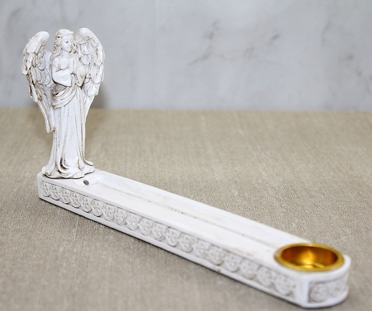 Polyester Melekli Tütsülük, zarif melek figürü ile tasarlanmış şık ve dekoratif bir tütsülük modelidir. 24 cm boyutundaki uzun formu sayesinde tütsü çubuklarını güvenli biçimde taşırken aynı zamanda kullanıldığı ortama estetik bir görünüm kazandırır. Melek figürünün detaylı işçiliği ürüne zarafet katar ve bulunduğu alanda huzurlu bir atmosfer oluşturur. Polyester malzeme yapısı sayesinde dayanıklı, hafif ve uzun ömürlüdür. Hem günlük tütsü kullanımında hem de dekoratif amaçla vitrinlerde, masa üstlerinde ve meditasyon köşelerinde tercih edilebilecek özel bir tasarımdır. Manevi temalı objeleri sevenler veya şık bir hediye arayanlar için ideal bir seçimdir.