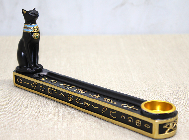 Polyester Mısır Kedisi Tütsülük, antik Mısır kültüründen ilham alınarak tasarlanmış dekoratif ve işlevsel bir tütsülük modelidir. 25 cm uzunluğundaki yapısı sayesinde tütsü çubuklarını güvenli ve düzenli bir şekilde kullanmayı sağlarken, üzerinde yer alan Mısır kedisi figürü ürüne mistik ve estetik bir hava katar. Siyah ve altın detayların birleşimi göz alıcı bir şıklık sunarken, polyester malzemeden üretilmiş olması ürüne sağlamlık, hafiflik ve uzun ömür kazandırır. Hem tütsü kullanımını kolaylaştıran hem de bulunduğu ortamın dekorasyonuna karakter katacak özel bir tasarımdır. Mısır temalı objeleri sevenler ve etkileyici dekoratif parçalar arayanlar için ideal bir seçimdir.