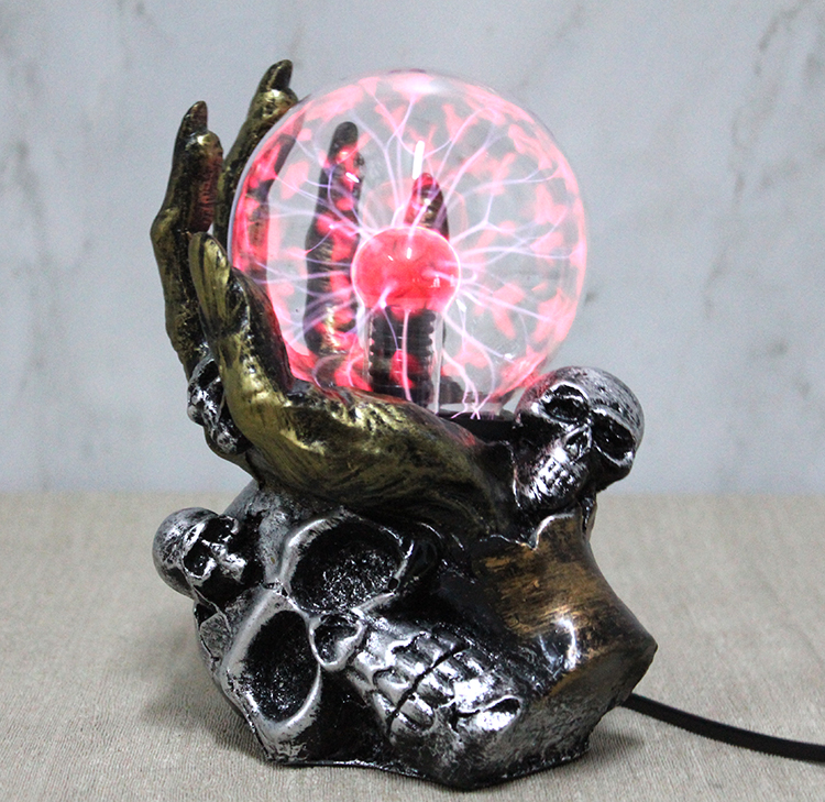 Polyester Plazma Lamba Model 2, karanlık temalı ve güçlü görsel etkisiyle dekoratif aydınlatma ürünleri arasında fark yaratan özel bir tasarıma sahiptir. 11x18 cm ölçülerindeki kompakt yapısı sayesinde masa üstü, raf, vitrin, çalışma masası, oyun odası ve genç odası dekorasyonlarında rahatlıkla kullanılabilir. Plazma cam küre içerisinde yer alan elektrik ışınları, dokunmaya duyarlı yapısı sayesinde temas edildiğinde elinizin yönüne doğru hareket ederek dikkat çekici bir görsel deneyim sunar. Kafatası detaylı polyester gövdesi, ürüne gotik ve modern bir hava kazandırırken aynı zamanda sağlam ve uzun ömürlü bir kullanım sağlar. Ortam ışığını loş ve etkileyici bir ambiyansa dönüştüren bu plazma lamba, dekorasyonuna sıra dışı bir dokunuş katmak isteyenler için ideal bir tercihtir. Koleksiyonluk obje arayanlar, oyun ve film temalı alanlar oluşturanlar ya da farklı bir hediye alternatifi isteyenler için güçlü bir görsel etki sunar.