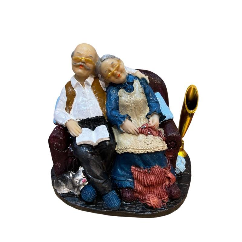 Polyester Yaşlı Çift Kalemlikli Biblo