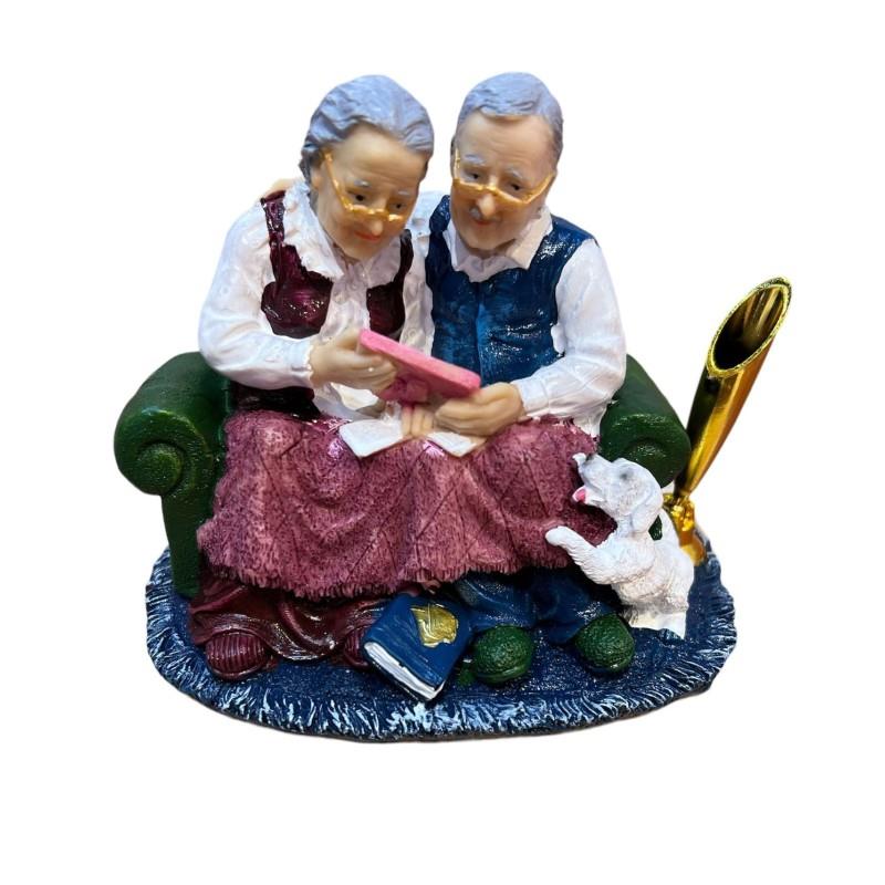 Polyester Yaşlı Çift Kalemlikli Biblo