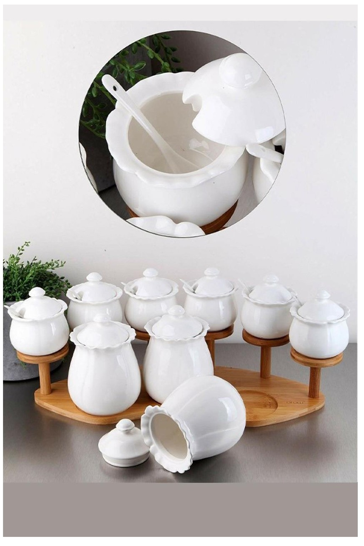 Paket İçeriği : 1 Adet Porselen 9 Parça Hürrem Baharat Takımı -Tr399