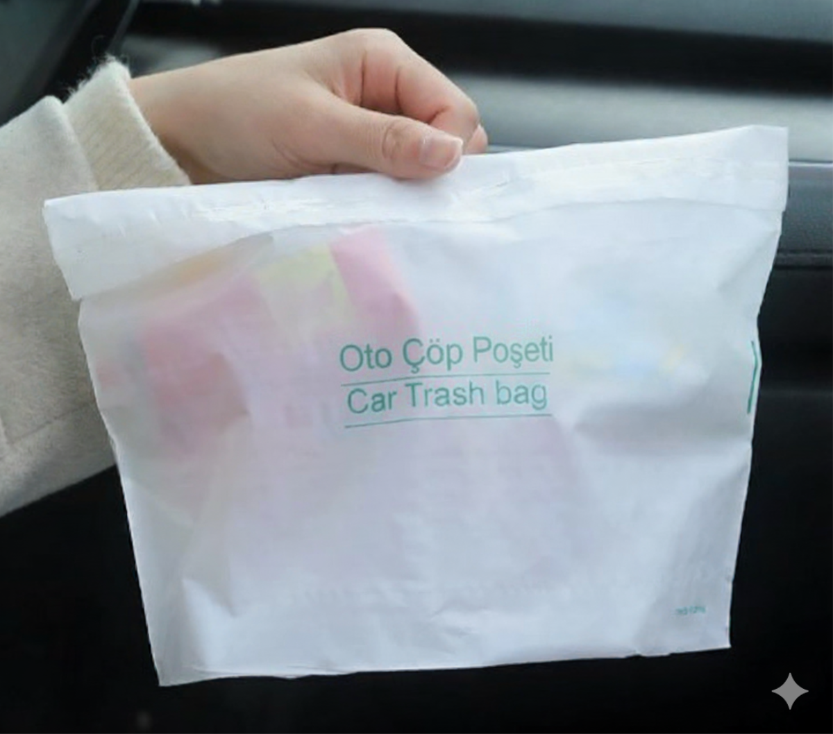 Oto Çöp Poşeti, seyahatlerinizde oluşan çöpleri pratik bir şekilde toplamanız için özel olarak tasarlandı.