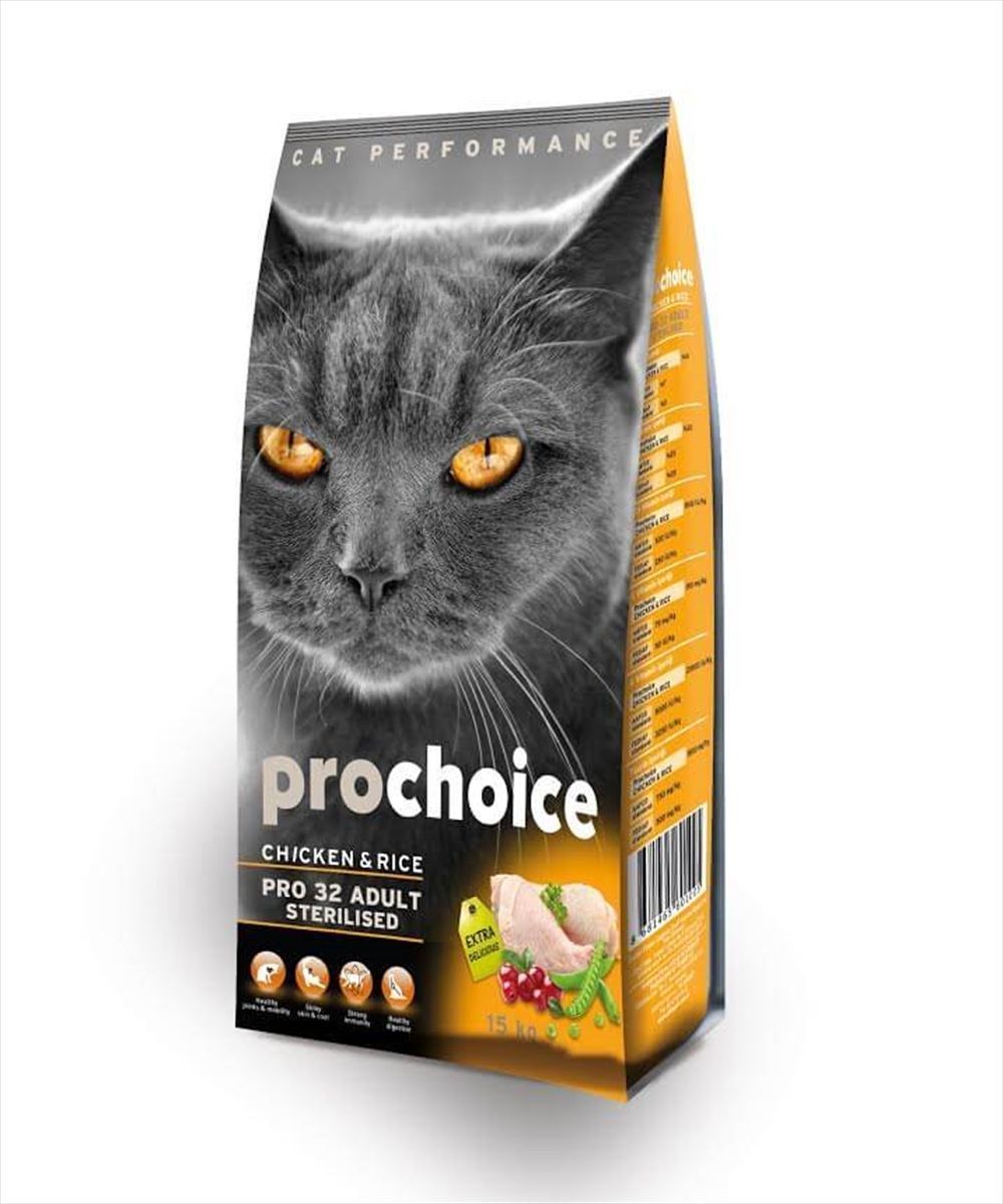Pro Choice Kısırlaştırılmış kedi maması 1 yaşın üzerindeki kısır kedilerin tam ve dengeli beslenmesi için hazırlanmış kedi mamasıdır.