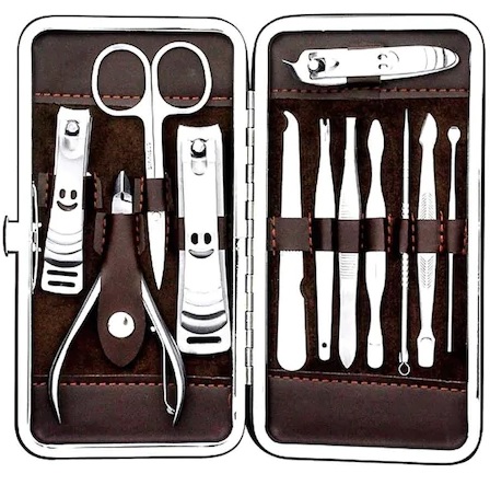 Tam 12 Çelik parçadan oluşur, şık Deri kutusu içinde manikür ve pedikür yaparken ihtiyacınız olan tüm parçaları bir arada sunar.