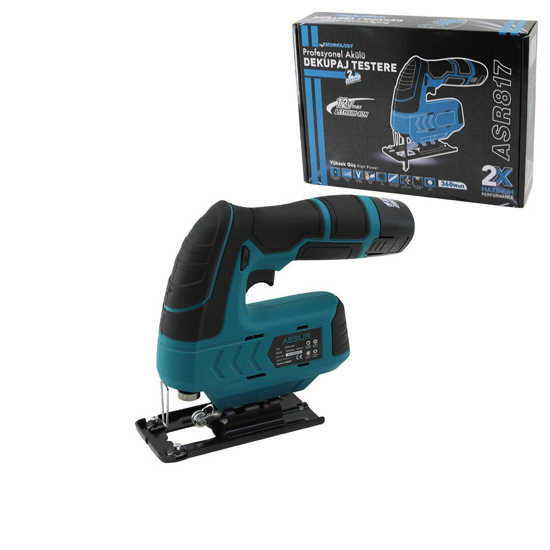 Profesyonel Şarjlı Dekupaj Testere Sunta Kesme Dekopaj Kademeli̇ Hız Ayar 2 Fren Si̇stemi̇ 12V 360W Asr817