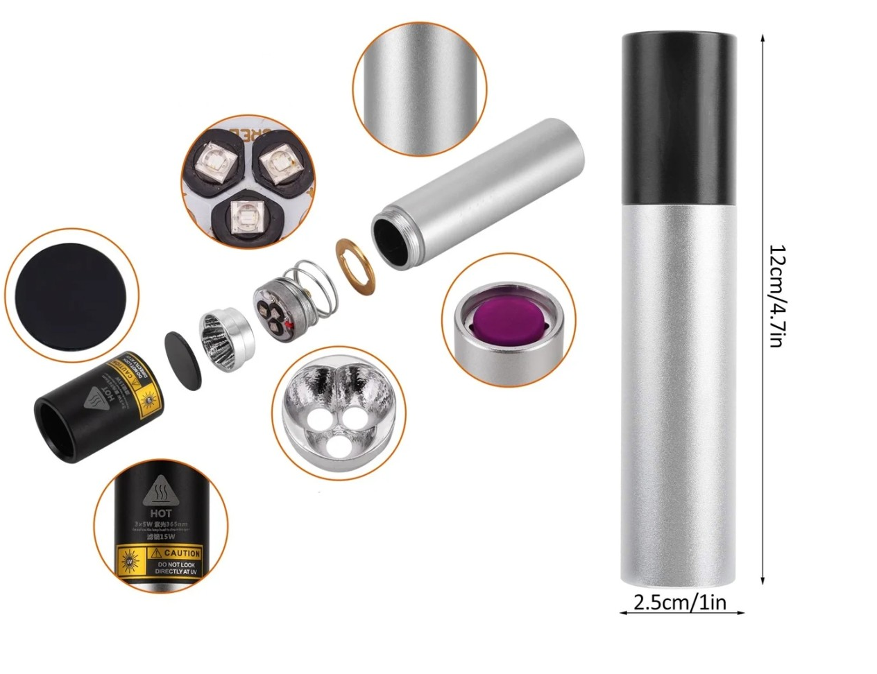 Güçlü UV Işık: Banknotların, çeklerin ve resmi belgelerin üzerine gizlenmiş floresan iplikçikleri, filigranları ve özel baskıları net bir şekilde görünür kılar.