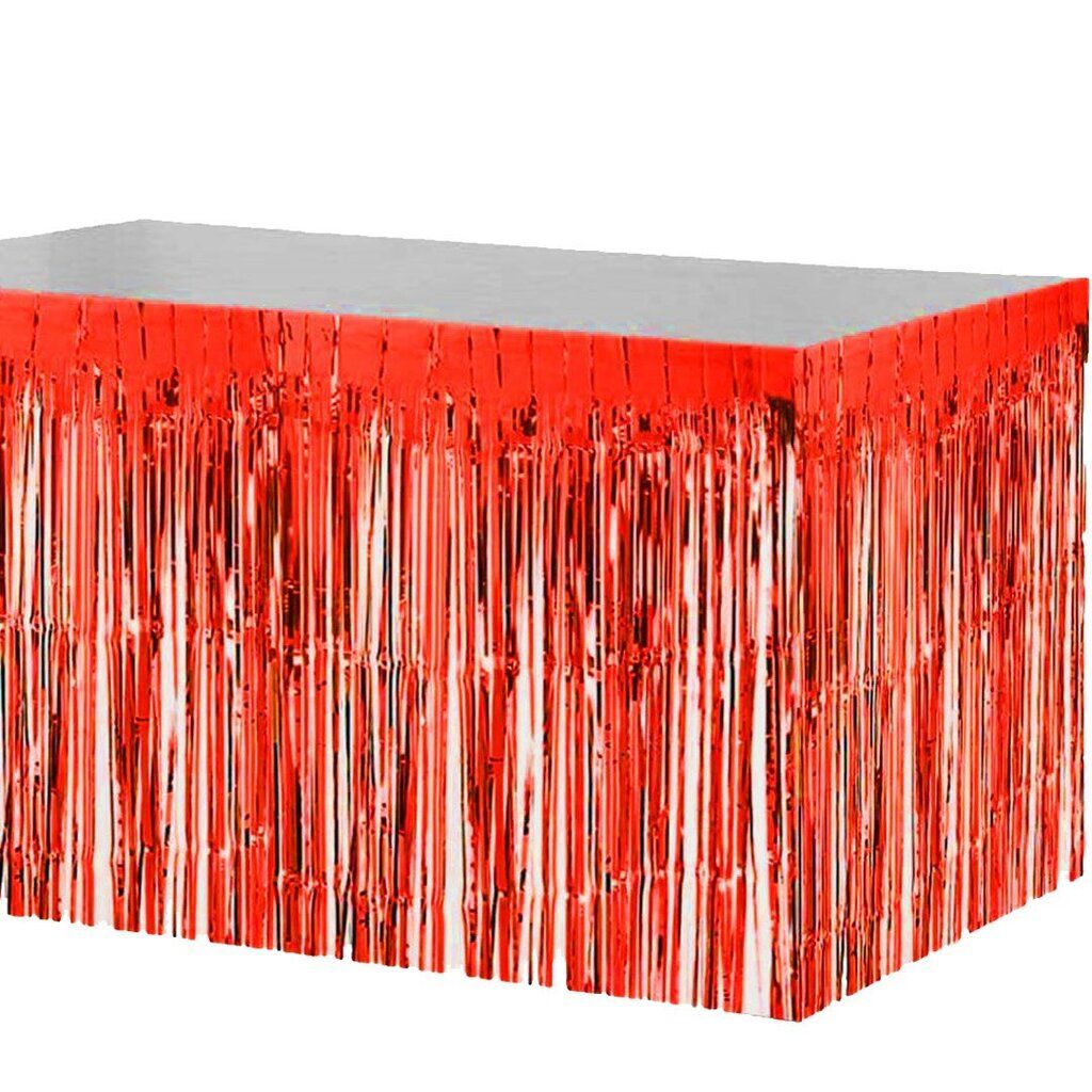 1 Adet Püsküllü Işıltılı Metalize Kırmızı Renk Masa Eteği 70x300 cm