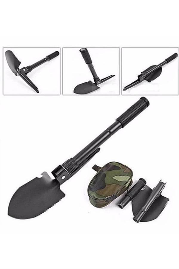 Kamp, doğa yürüyüşü, keşif ya da acil durum hazırlıkları için tasarlanmış bu portatif çantalı, pusulalı katlanabilir kazma kürek seti; kompakt yapısıyla maksimum işlevselliği bir araya getiriyor. Askeri ve bilimsel kullanım standartlarını karşılayan bu dayanıklı set, zorlu dış mekan koşullarında dahi güvenilir bir yardımcı olarak öne çıkar. Sertleştirilmiş karbon çeliğinden imal edilen başlık kısmı, hem dayanıklılığı hem de uzun ömürlü performansı garanti ederken; yumuşak kauçuk sapı ise kullanım sırasında konfor sağlar.Kazma, kürek, testere, balta, şişe açacağı ve yön bulmaya yarayan pusula gibi çok sayıda özelliği tek bir üründe buluşturan bu set; aynı zamanda tehditlere karşı öz savunma amaçlı kullanılabilecek sağlam bir tasarıma sahiptir. 41,5 cm uzunluğundaki açılır formuyla işlevselliğini artırırken, katlandığında kolayca taşınabilir hale gelir. Pratik taşıma çantası sayesinde ürünü hem muhafaza etmek hem de dilediğiniz her yere götürmek son derece rahattır.Toprak kazmak, dal kesmek, kamp alanı hazırlamak, yön tayin etmek ya da acil durumlarda yardım çağırmak gibi birçok ihtiyacınıza cevap verebilecek bu çok amaçlı kamp seti; doğayla iç içe vakit geçiren herkesin çantasında mutlaka bulunması gereken hayati bir yardımcıdır.