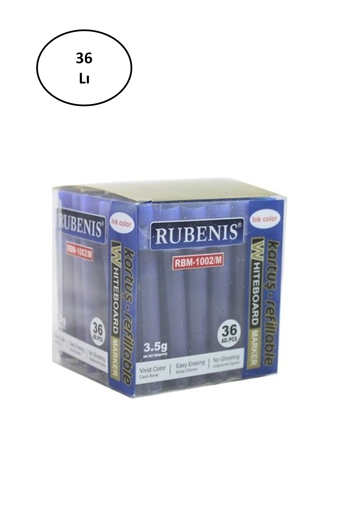| RBM-1002/M Tahta Kalemi Kartuşu Mavi - 36 Adetlik Kutu - Ürün Kodu : BOĞ.RBM-1002/M |