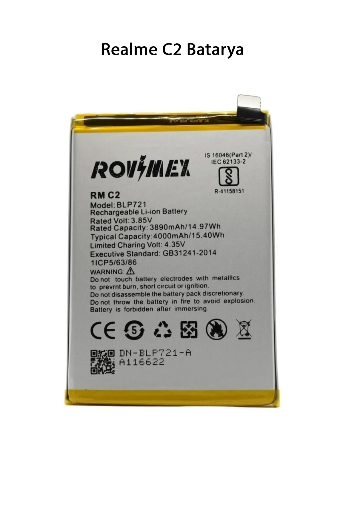 | Realme C2, 4.000 mAh batarya kapasitesine sahip bir akıllı telefondur. Batarya, Li-Po teknolojisine sahip olup, 10W şarj hızını destekler. Telefonun normal kullanım koşullarında tek bir şarjla tam gün kullanım sağlaması beklenir. Ayrıca, telefonun enerji tüketimini optimize eden yazılım özellikleri de bulunmaktadır. Paket İçeriği : 1 Adet Realme C2 Batarya |