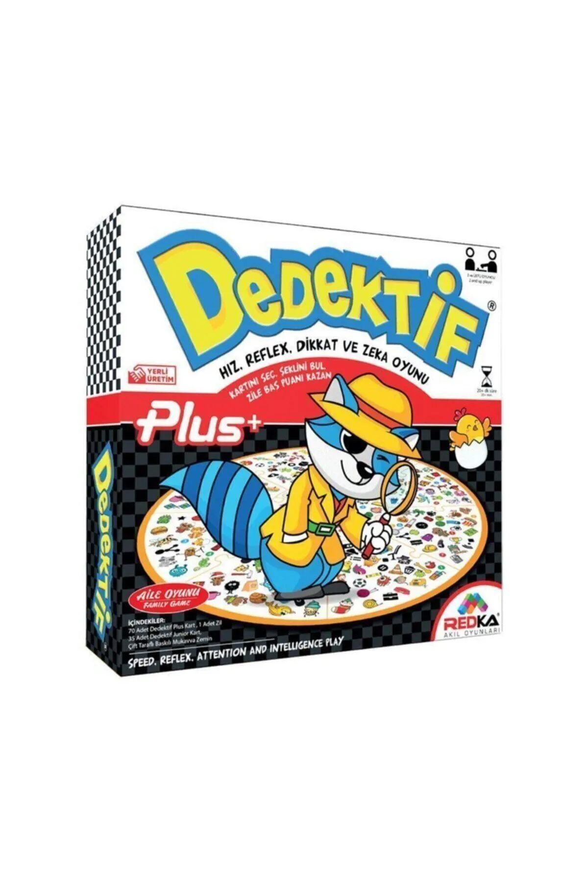 | Redka Akıl Oyunları Aile Oyunu Dedektif Plus Akıl Oyunu - Ürün Kodu : KUM.8681049053176 Redka dedektif zeka oyunu redka dedektif zeka oyunu hem hız, hem de hafıza gerektiren şahane bir oyun. Oyun kartların üzerinde bulunan şekilleri mukavva kartlar üzerinde bulun, oyunu kazanın. Redka dedektif oyununda toplamda 70 adet oyun kartı ve 9 adet de mukavva kart bulunur. Mukavva kartlar masaya ya da yere serilir ve ortaya zilin konulacağı mukavva konulur. 70 adet kart da puan kısımları görülecek şekilde masaya yerleştirilir. 70 adet kartın bir kısmı 1 puan, bir kısmı 2 puan, bir kısmı da 3 puandır. Üzerindeki görsel sayısı arttıkça puan da paralel olarak artar. Yani üzerinde 3 resim olan kart 3 puan, 2 resim olan 2 puan ve 1 resim olan 1 puandır. 2 ya da daha fazla oyuncu zile eşit mesafede olacak şekilde dizilir. Ortadan bir kart çekilir ve karttaki görsel ya da görseller, mukavvalar üzerinden bulunmaya çalışılır. Görseli mukavva üzerinde ilk bulan oyuncu kartı alır ve kartın arkasındaki puanı hanesine yazdırır. Yalnız aman dikkat! Bazı görseller birbirine çok benziyor ve yanlış görseli bulduğunuzu fark etmeyebilirsiniz. Bu durum yaşanırsa kartın üzerinde kaç puan yazıyorsa o kadar puan hanenizden silinir. Oyun sonunda en çok puan alan oyuncu oyunu kazanır. 3 yaş ve üstü çocuklar için tasarlanan bu oyunda dilerseniz seviyeyi biraz daha zorlaştırabilirsiniz. Normalde seçtiğiniz karttaki görsel masanın üzerinde açık olarak dururken, görsele birkaç saniye bakıp kartın arka yüzünü çevirebilirsiniz. Bu sayede bakmak ile görmek arasındaki farkı anlayabilir, hafızanızı da geliştirebilirsiniz. |