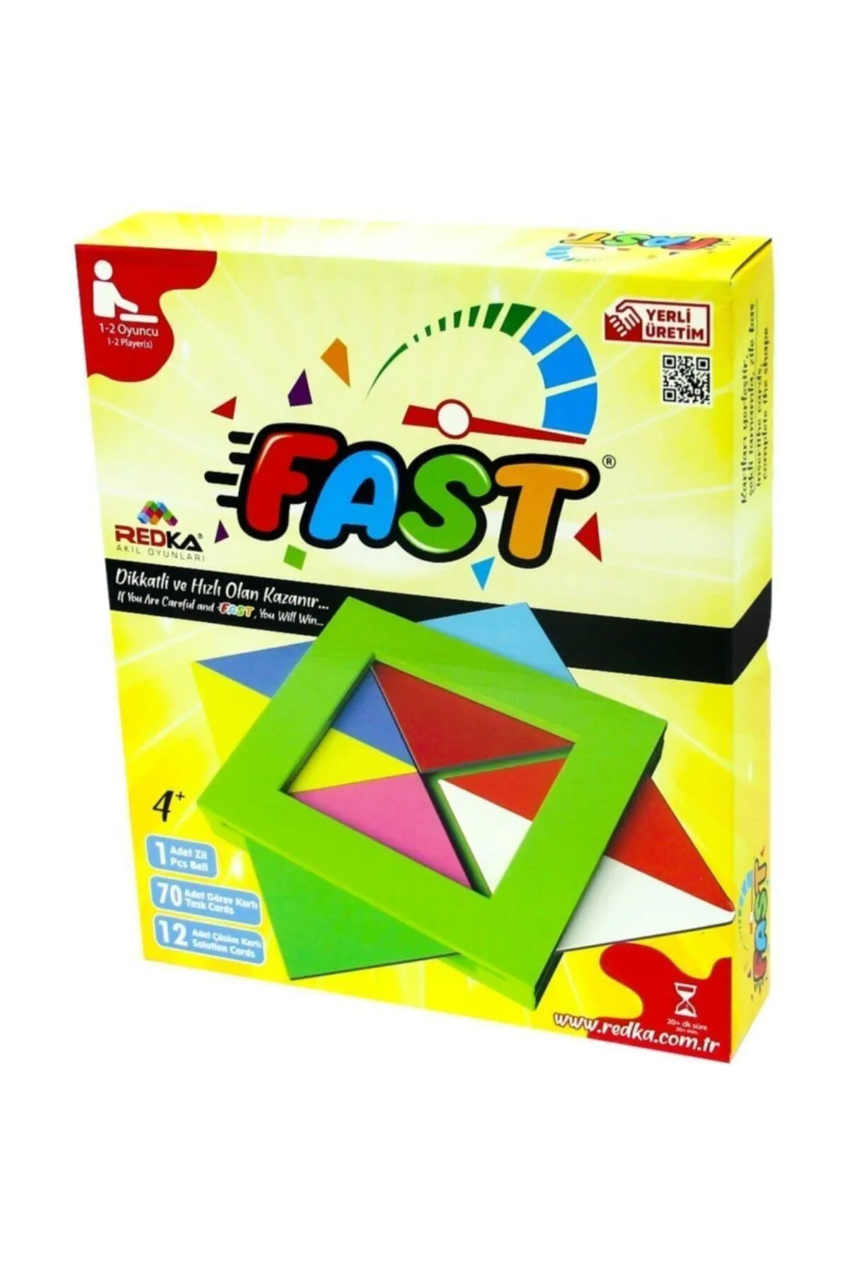 | Redka Akıl Oyunları Redka Fast Oyunu - Ürün Kodu : KUM.8681049053992 Fast Çözüm Kartları (6 adet) Bu kartlar iki kişilik oyun için tasarlanmıştır. 70 adet bulunmaktadır. Her kartın arkasında şekli oluşturmak için kullanılacak çözüm kart sayısı belirtilmektedir. Oyuncular görev kartına bakarlar. Gördükleri şekilleri soldaki çift taraflı basılmış çözüm kartlarını kullanarak oyun platformunda oluşturmaya çalışırlar. Görev Kartları (70 adet) Fast oyununda 70 adet görev kartı, oyuncunun bu görev kartlarını oluşturması için kullanacağı 6 adet çözüm kartı vardır. Oyuncu bu 6 kart ile 70 görev kartının tamamını oluşturabilmektedir. Görev kartlarında bulunan şekiller bazen 2 kart, bazen ise 4 kart kullanılarak oluşturabilmektedir. Yaş Grubu : 6+ Yaş Barkodu: 8681049053992 Item No : RD5399 Kutu Ölçüleri : 33 x 27 x 6,5 cm. Desi Değeri: 2 |