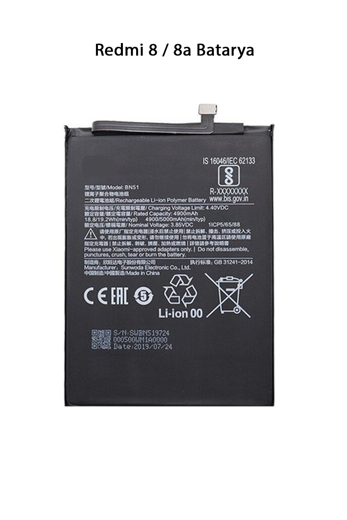 | 5000 mAh Li-Po batarya 18W hızlı şarj desteği 10W şarj adaptörü ile kutudan çıkar Bekleme süresi: Yaklaşık 31 gün Konuşma süresi: Yaklaşık 25 saat Müzik çalma süresi: Yaklaşık 120 saat Video oynatma süresi: Yaklaşık 17 saat Paket İçeriği : 1 Adet Redmi 8 / 8A Batarya |
