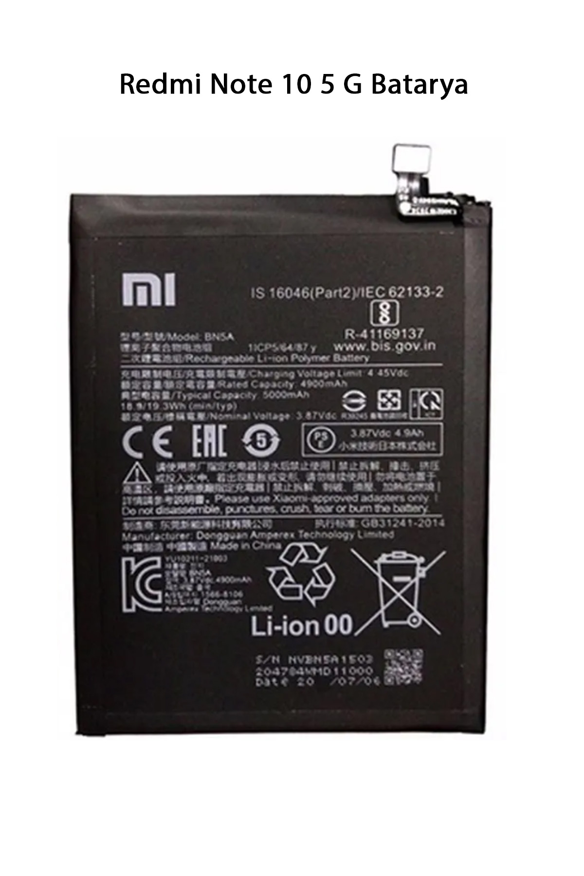 | Redmi Note 10 5G, 2021 yılında piyasaya sürülen bir akıllı telefondur. Batarya özellikleri şöyledir: Kapasite: 5000 mAh Şarj hızı: 18W hızlı şarj Şarj tipi: USB Type-C Kablosuz şarj: Desteklenmiyor Ters şarj: Desteklenmiyor Paket İçeriği : Redmi Note 10 5 G Batarya |