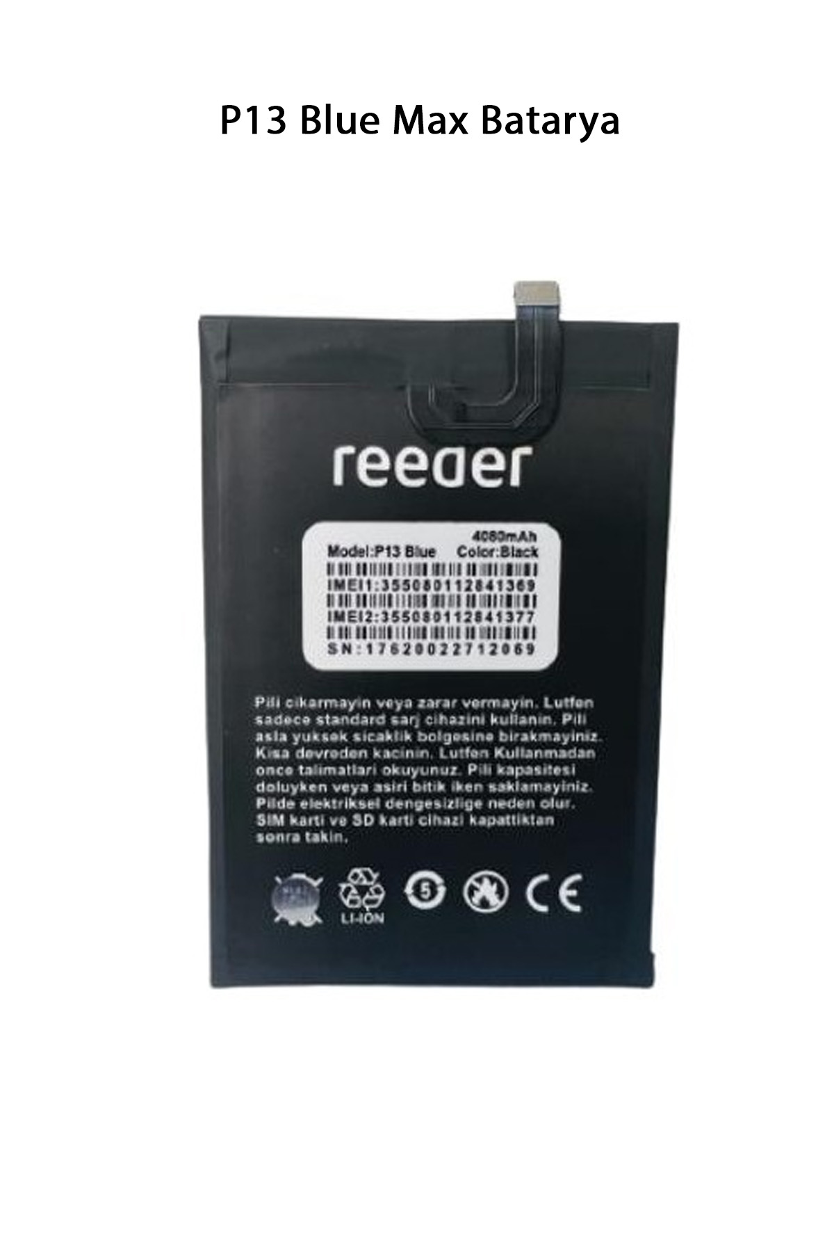 | Reeder P13 Blue Max'in batarya özellikleri şu şekildedir: Kapasite: 4080 mAh Pil Türü: Li-Po Şarj Tipi: MicroUSB Hızlı Şarj Desteği: Var 4080 mAh kapasitesi sayesinde, Reeder P13 Blue Max oldukça uzun süre kullanılabilir ve pil ömrü oldukça uzun sürebilir. Ayrıca hızlı şarj desteği sayesinde, pilinizi daha kısa sürede şarj edebilirsiniz. Paket İçeriği : Reeder P13 Blue Max Batarya |