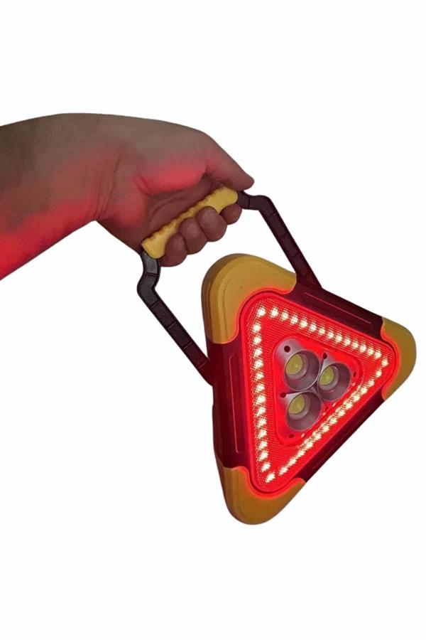 Reflektör Güneş Panelli Solarlı Şarjlı Üçgen Işıklı Trafik Reflektör Fener