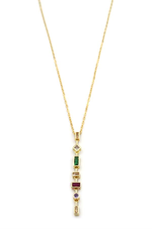 Renkli Taşlı Element Kolye - Altın