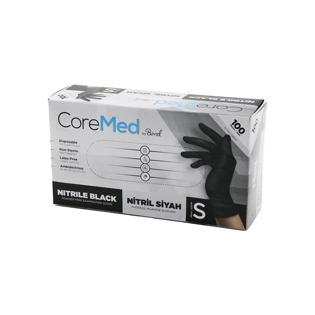 S Beden Siyah Pudrasız Nitril Muayene Eldiveni 100Lü