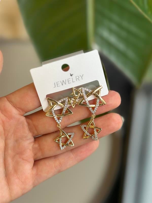 Sallantılı Yıldız Küpe - Altın