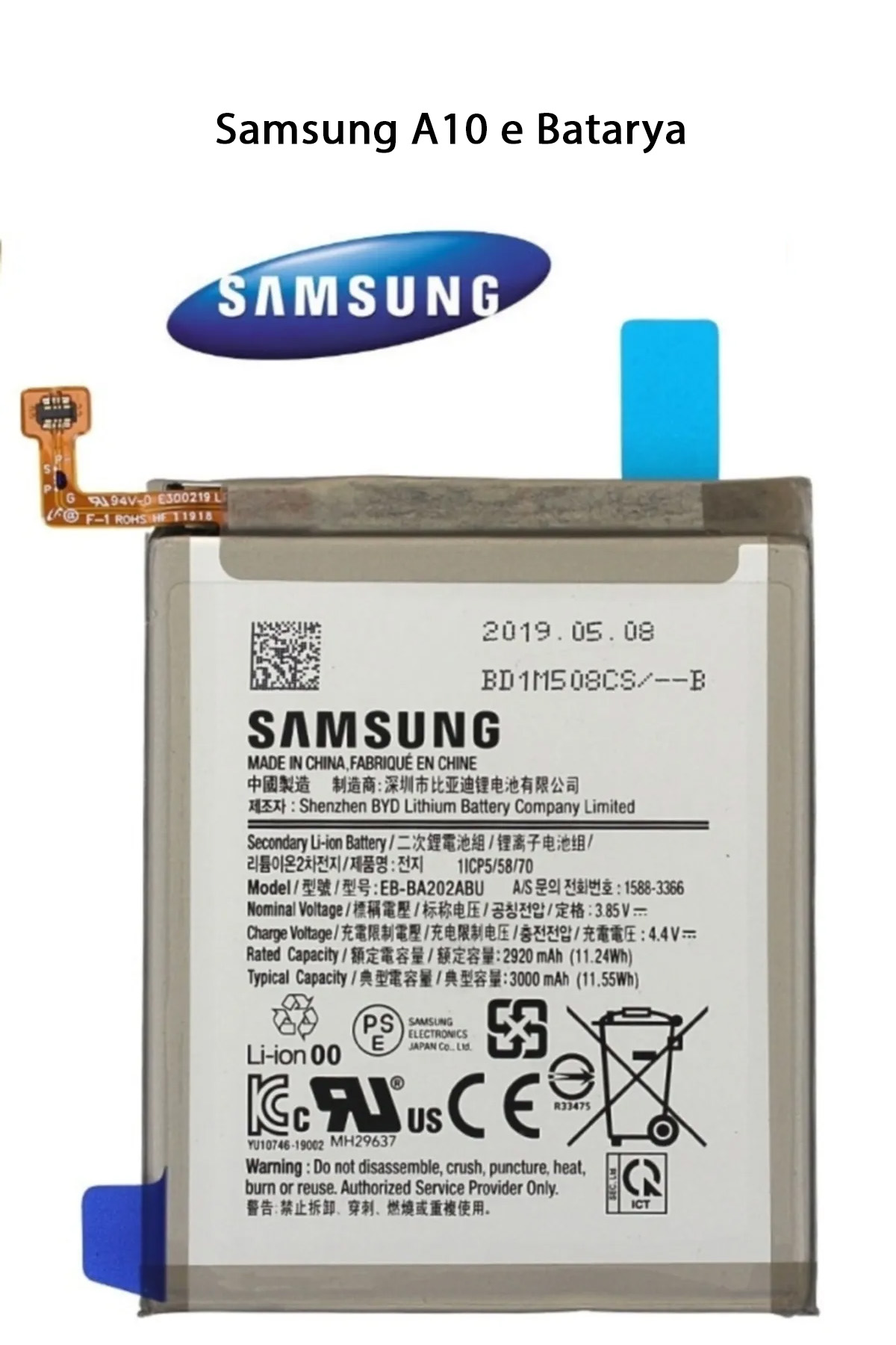 | Batarya kapasitesi: 3000 mAh Şarj teknolojisi: Hızlı şarj desteği yok Konuşma süresi: Yaklaşık 23 saat Bekleme süresi: Yaklaşık 16 güne kadar Şarj portu: Mikro USB Paket İçeriği : 1 Adet Samsung A10 E Batarya |