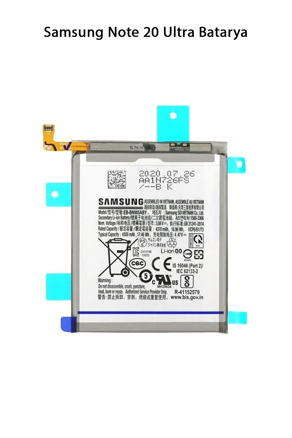 | Samsung Galaxy Note 20 Ultra, çıkarılabilir olmayan bir Li-Ion 4500 mAh bataryaya sahiptir. Batarya ömrü, kullanım alışkanlıklarına, ağ bağlantısı ve ekran parlaklığı gibi faktörlere bağlı olarak değişebilir. Ancak, Note 20 Ultra modeli yoğun kullanıma dayanacak şekilde tasarlanmıştır ve bir tam gün boyunca tek bir şarj ile rahatlıkla kullanılabilir. Cihaz ayrıca, hızlı şarj özelliği sunar ve 25W hızlı şarj adaptörü ile bataryanın yaklaşık 1 saat 10 dakika içinde %50 oranında, yaklaşık 1 saat 40 dakika içinde ise tamamen şarj olması mümkündür. Kablosuz şarj özelliği de mevcuttur ve hatta 15W ters kablosuz şarj desteği de bulunmaktadır. Paket İçeriği : 1 Adet Samsung Note 20 Ultra Batarya |