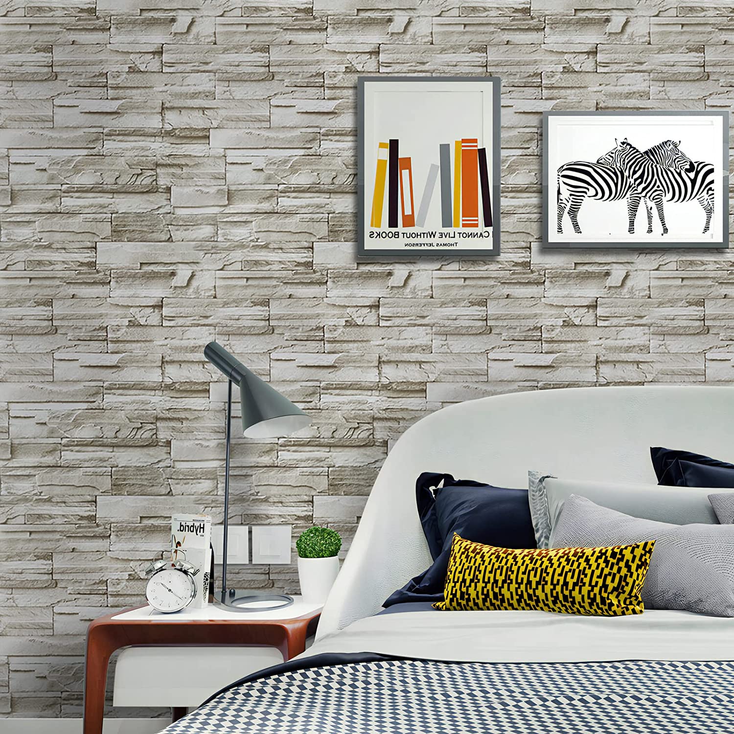1 Adet Sarı Tuğla Taş Desenli Kendinden Yapışkanlı 3D Duvar Raf Kapı Kaplama Kağıdı 3 Metre 60 Cm