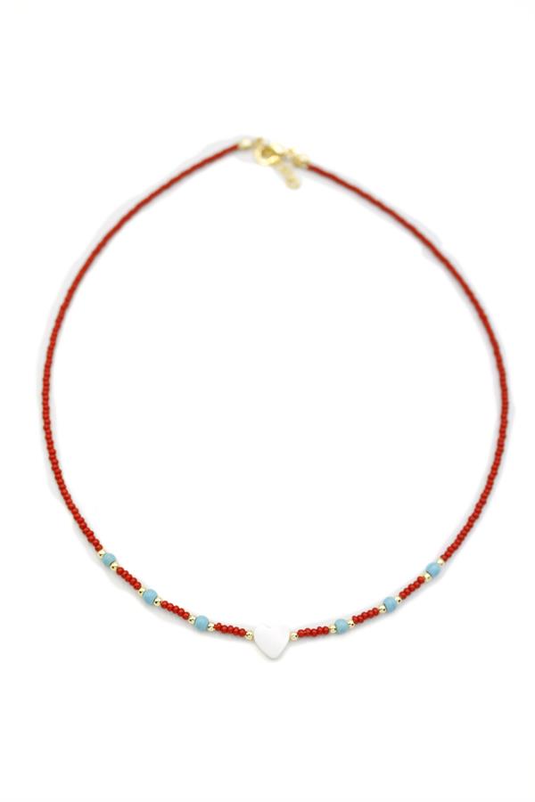 Sedef Kalpli Boncuk Kolye - Kırmızı
