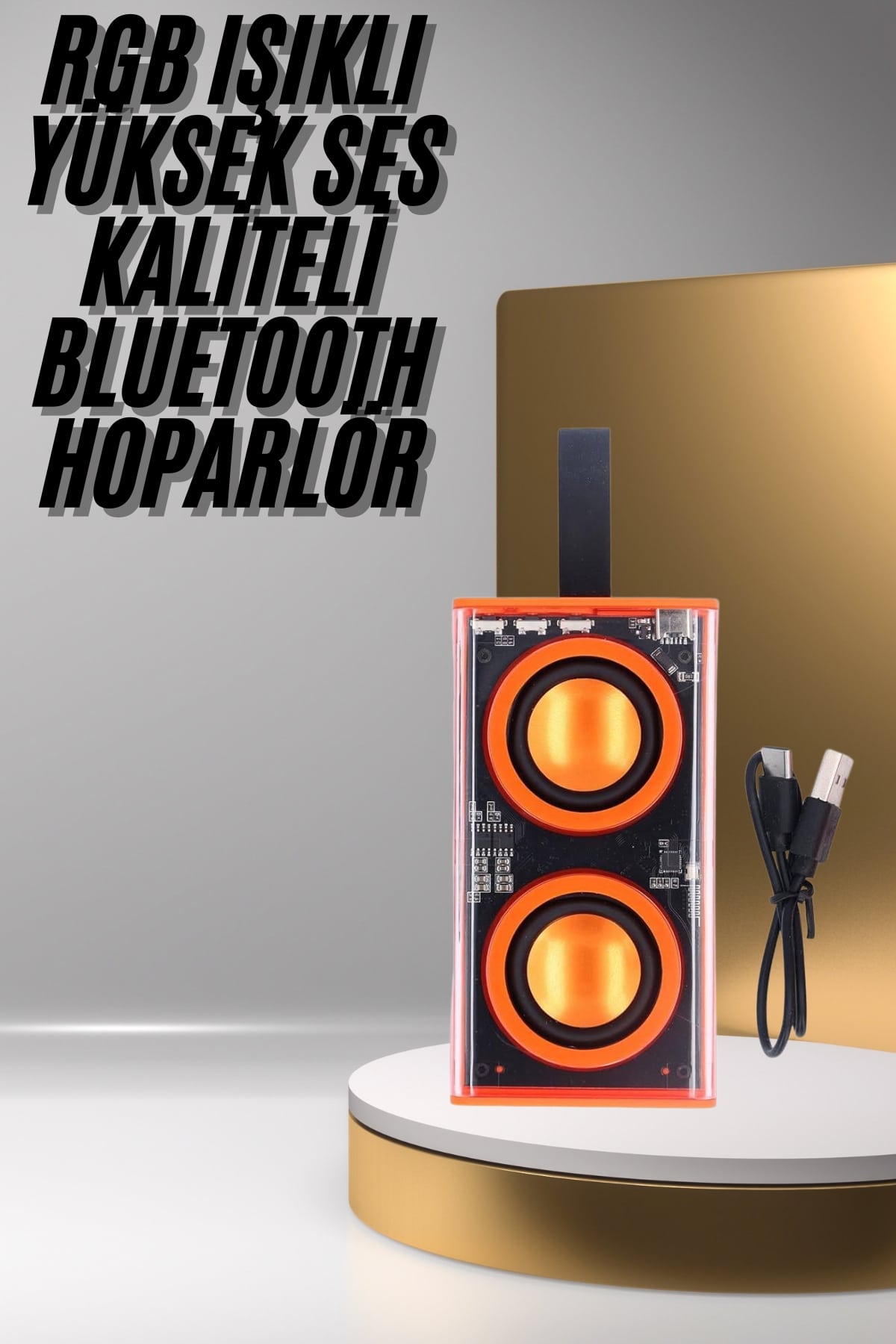 Ürün, bir adet hoparlör, Type-C şarj kablosu ve kullanım kılavuzuyla birlikte gelir. Modern tasarımı, güçlü ses performansı ve dinamik ışık oyunlarıyla, bu hoparlör hem gözünüze hem kulağınıza hitap eder.