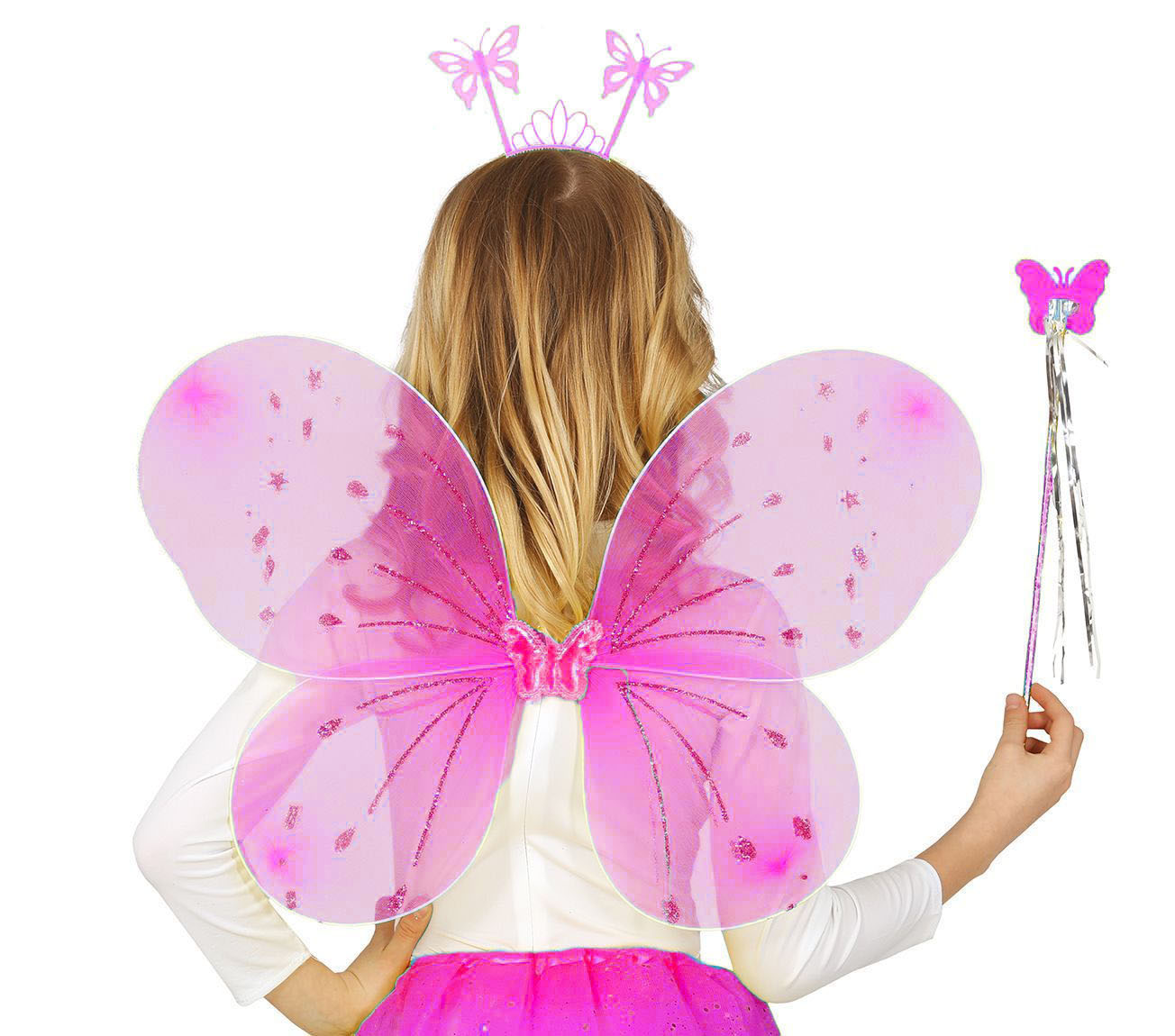 Ürün Adı: Şeker Pembe Renk Çocuk Kelebek Kanat Taç Asa Seti 50 cm