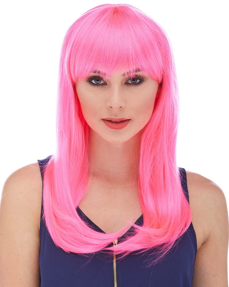 Şeker Pembesi Koyu Pembe Renk Uzun Düz Parti Peruğu