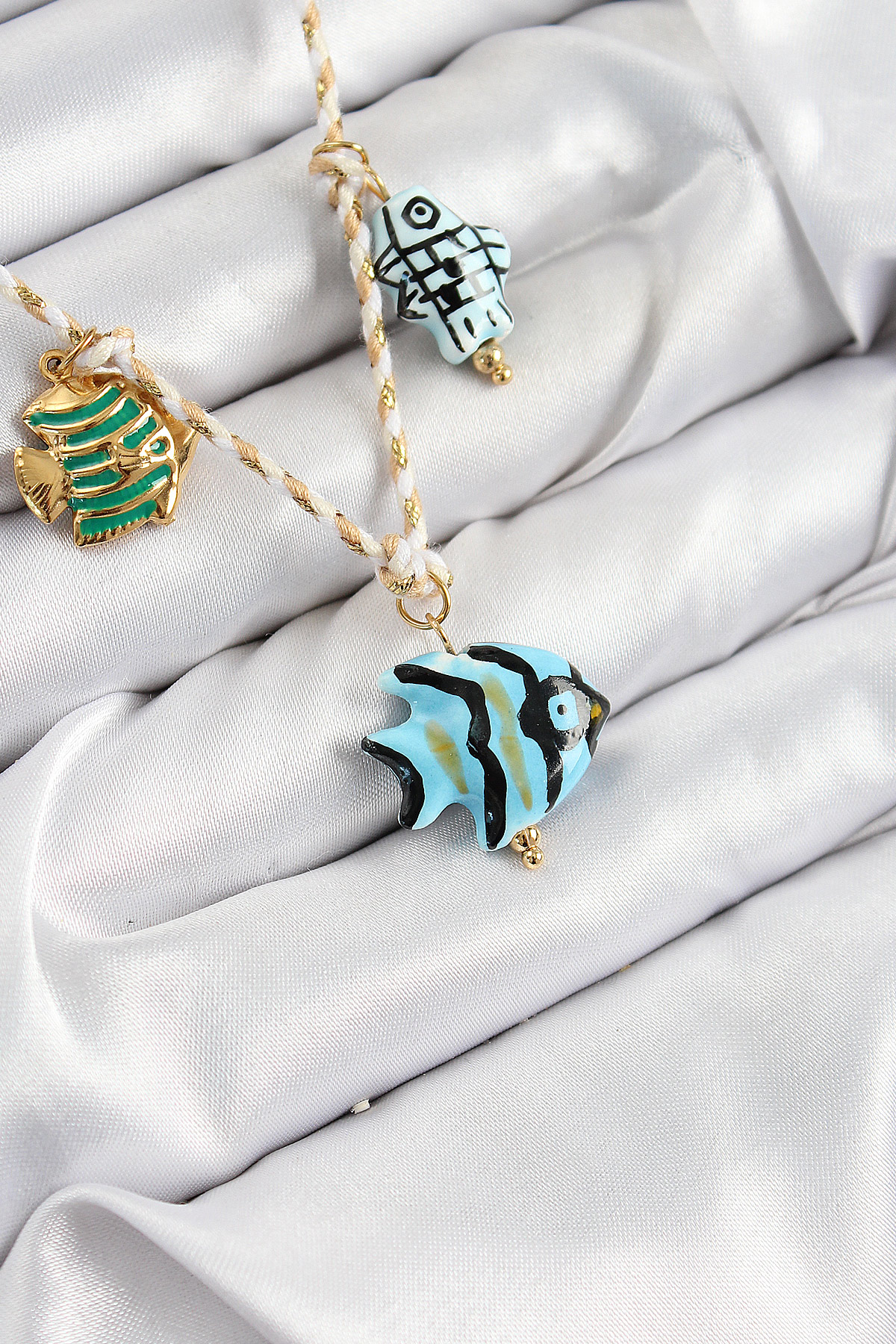Seramik Motifli Balık Figürlü Model Krem İp Kadın Kolye - TJ-BKO10394