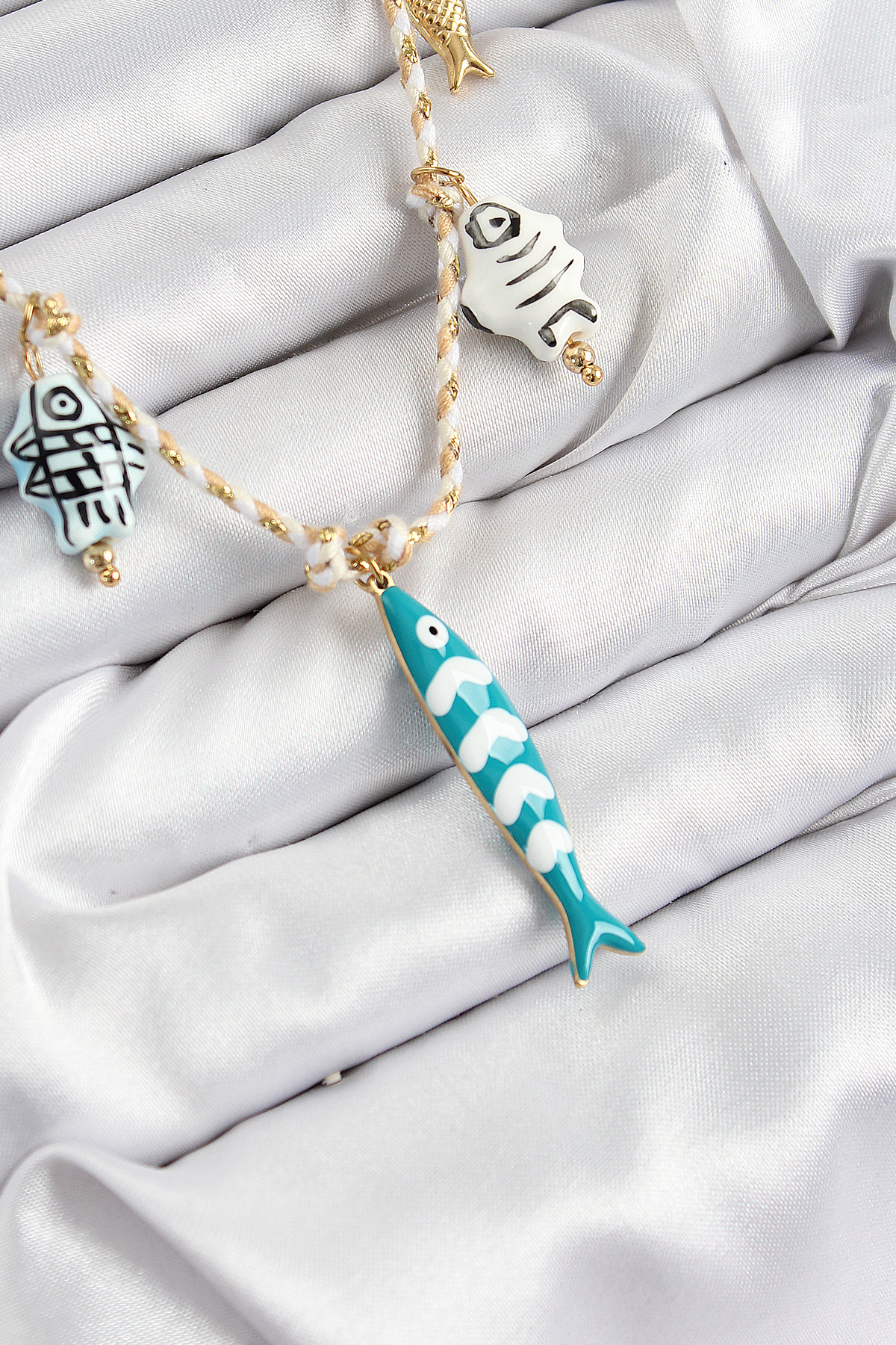 Seramik Motifli Balık Figürlü Model Krem İp Kadın Kolye - TJ-BKO10401