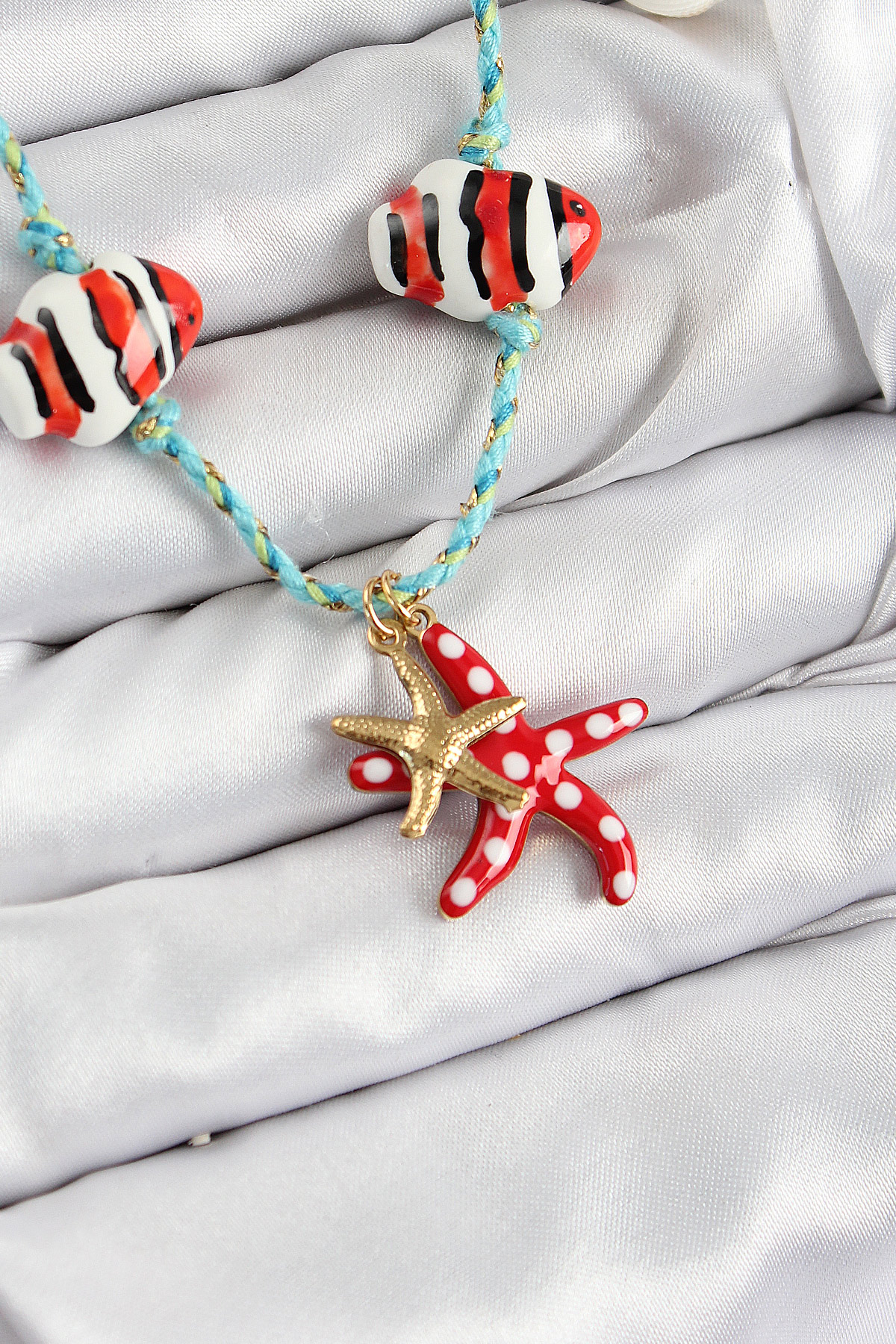 Seramik Motifli Deniz Yıldzı Figürlü Model Mavi İp Kadın Kolye - TJ-BKO10402