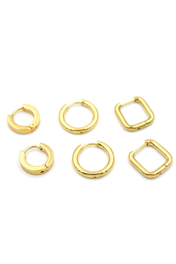 Set Çelik Küpe - Altın