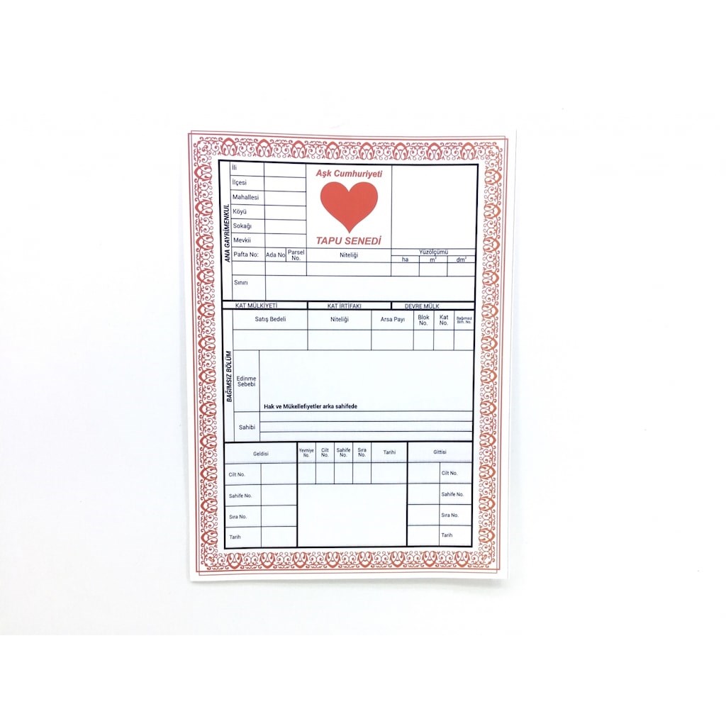 1 Adet Aşk Cumhuriyeti Tapu Senedi
