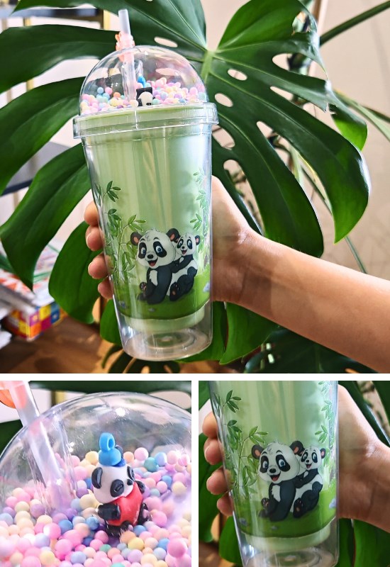 Sevimli Panda Temalı Çift Katman 450ml Suluk Pipetli Mika Matara Yeşil 2770