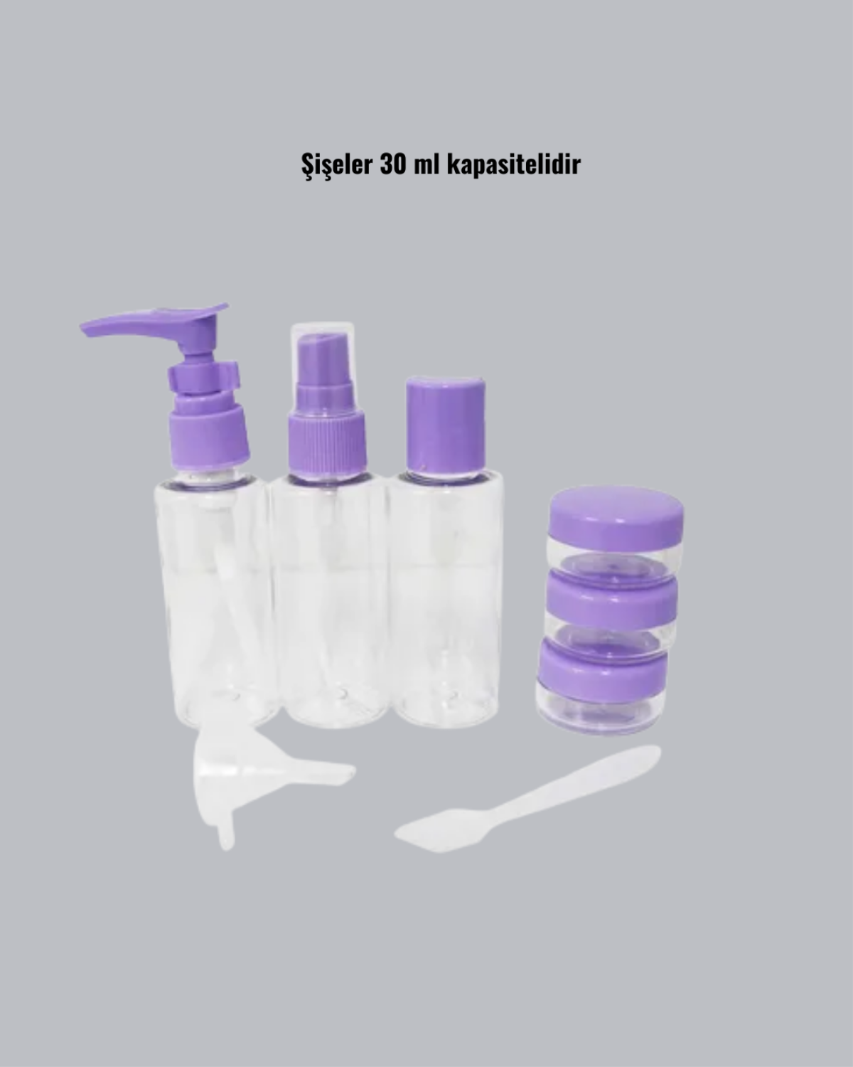 Seyahatlerde, tatillerde veya günlük hayatta kişisel bakım ürünlerini yanınızda taşımak isteyenler için tasarlanan 5 Parça Seyahat Banyo Seti, kompakt boyutları ve kullanışlı yapısıyla büyük kolaylık sağlar. Set, 30 ml'lik şişe, sprey, şampuanlık ve iki adet krem kutusundan oluşur. Tüm parçalar dayanıklı, şeffaf ve estetik bir materyalden üretilmiştir. İçeriği kolayca görebilmenizi sağlayan bu şeffaf tasarım, düzenli kullanım için büyük avantaj sunar. Sızdırmaz kapak sistemi ile yolculuk sırasında dökülmeleri engeller. Pratik taşıma çantası sayesinde ürünler çantanızda dağılmaz ve hijyenik şekilde korunur. Hem uçak seyahatlerinde hem spor salonunda hem de günlük kullanımda ihtiyaçlarınızı karşılayacak ideal boyutlara sahiptir. Kompakt ve hafif yapısıyla yer kaplamadan taşınabilir. Estetik tasarımı sayesinde her yaşa ve kullanıcıya hitap eden bir üründür. Renkler karışık gönderilir.