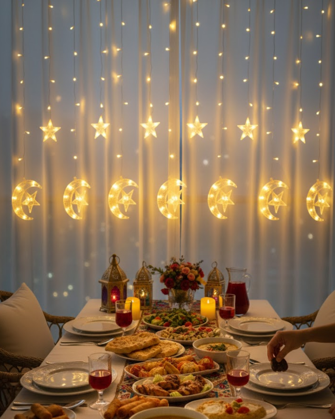 Sıcak Beyaz Ay Yıldız Işık Zinciri Parti Düğün Ramazan Dekoru