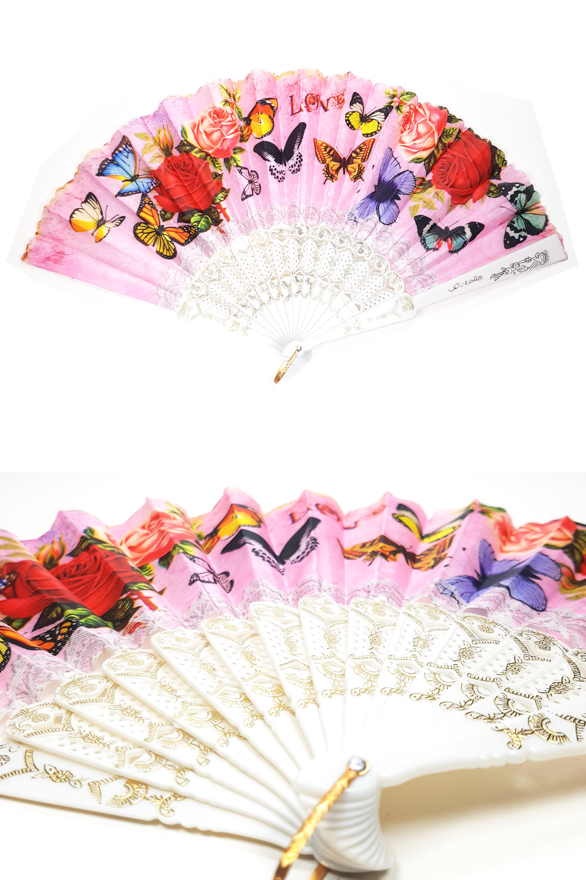 Şık Gül Kelebek Desenli Doğal Serinletici Katlanabilir Yelpaze