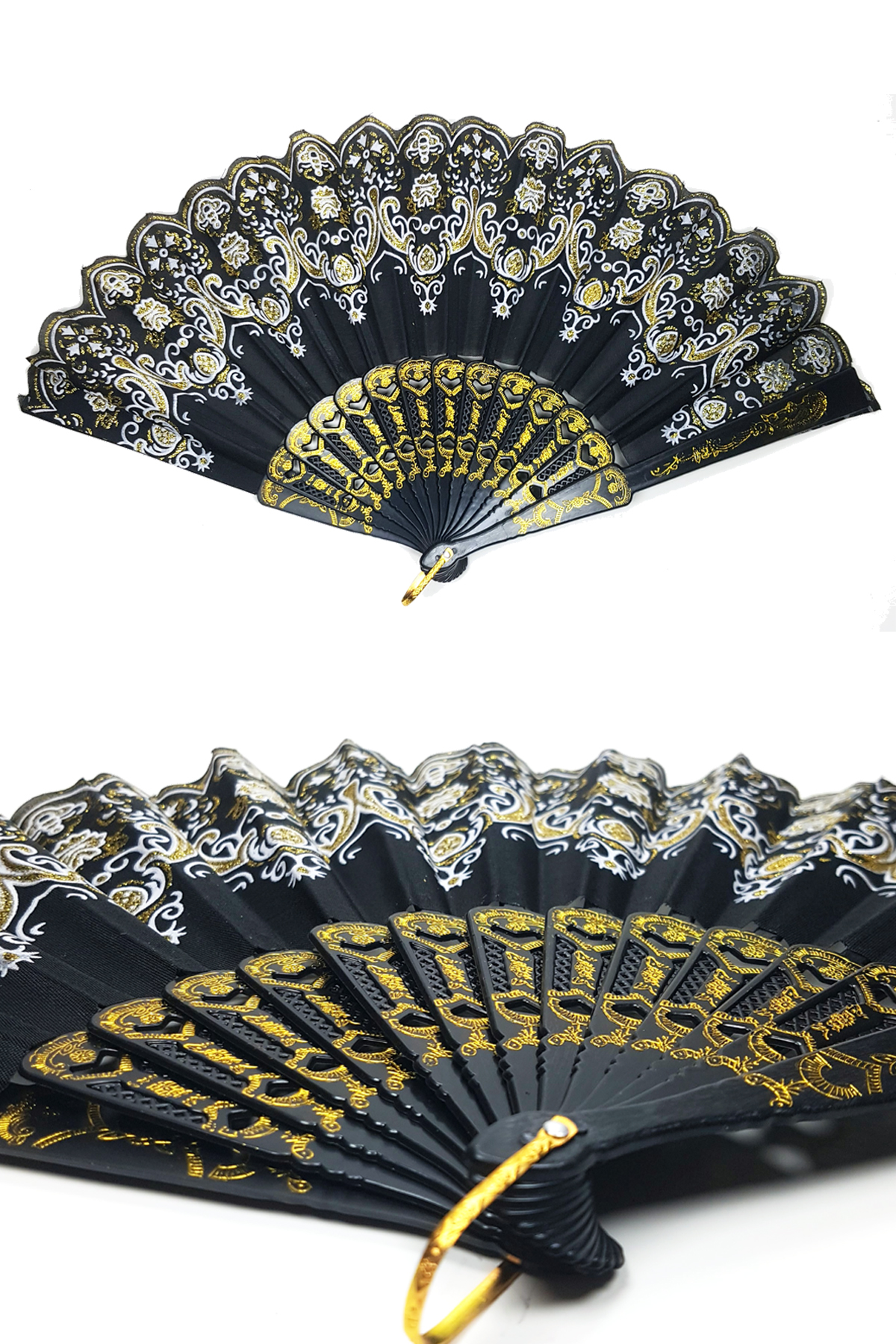 Şık Siyah Desenli Doğal Serinletici Katlanabilir Yelpaze