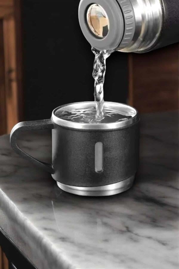 Şık ve Dayanıklı 3 Bardaklı Termos Seti Uzun Süre Isı Koruma Özellikli