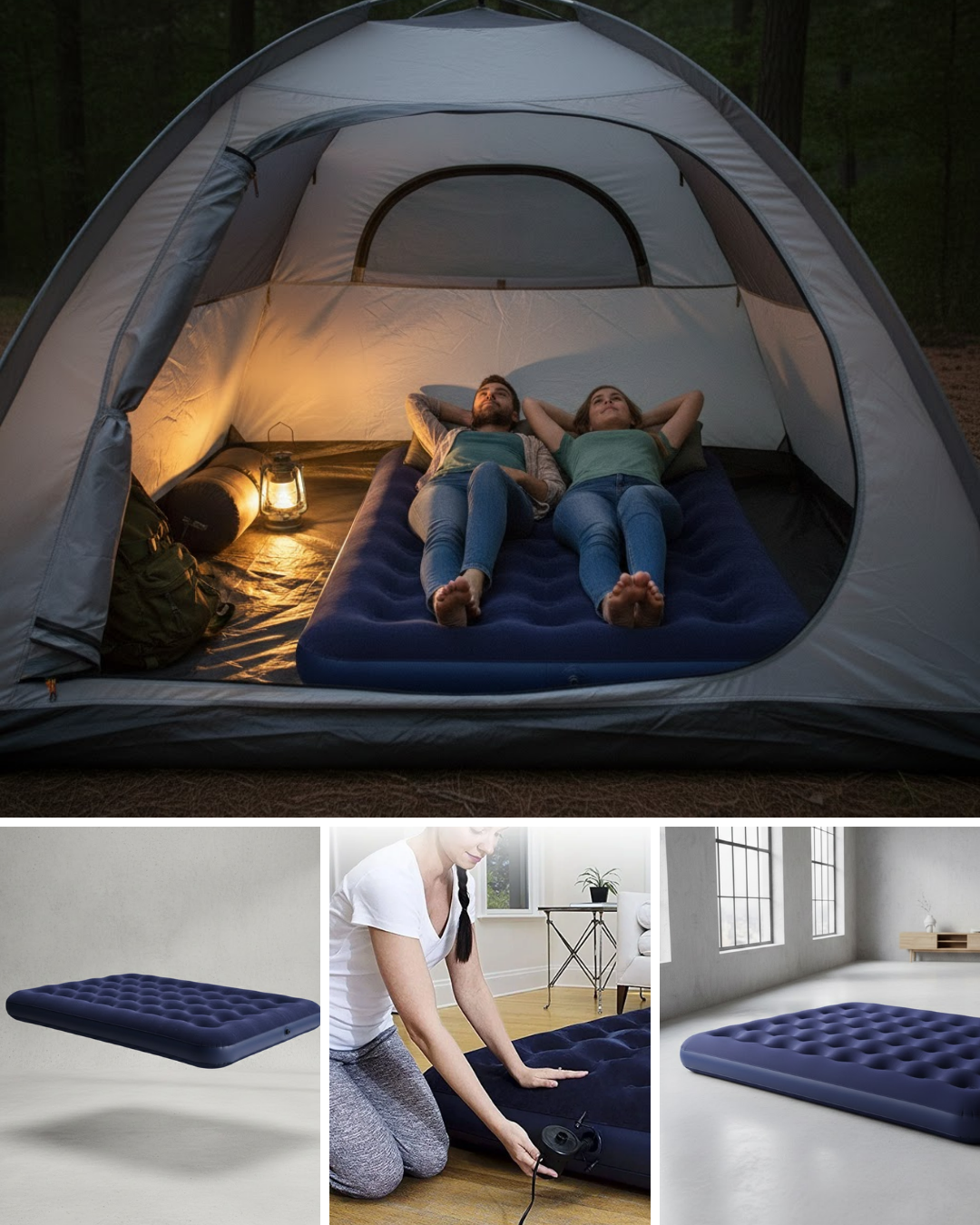 Çok amaçlı kullanım için tasarlanan bu çift kişilik şişme yatak, kamp ve ev içi ihtiyaçlar için ideal bir tercihtir. Dayanıklı vinil gövde, uzun ömürlü kullanım sunarken flokeli yüzey konforu artırır. Sarmal kirişli iç yapı, dengeli ve rahat bir yatış sağlar. Vidalı vana sistemi ile hızlı şişirilip indirilebilir. Az yer kaplayan yapısı sayesinde kolayca saklanır. Konforlu, sağlam ve pratik bir uyku çözümü arayanlar için uygundur.