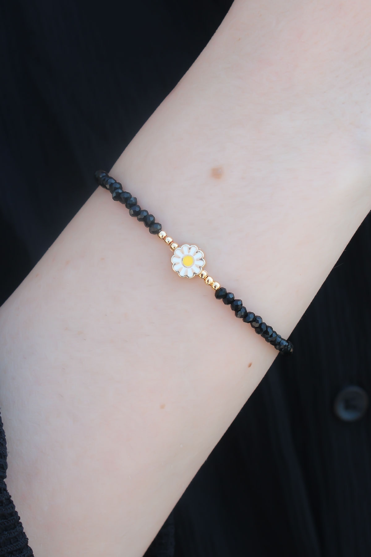Siyah Boncuk Model Papatya Figür Kadın Bileklik - TJ-BB5269