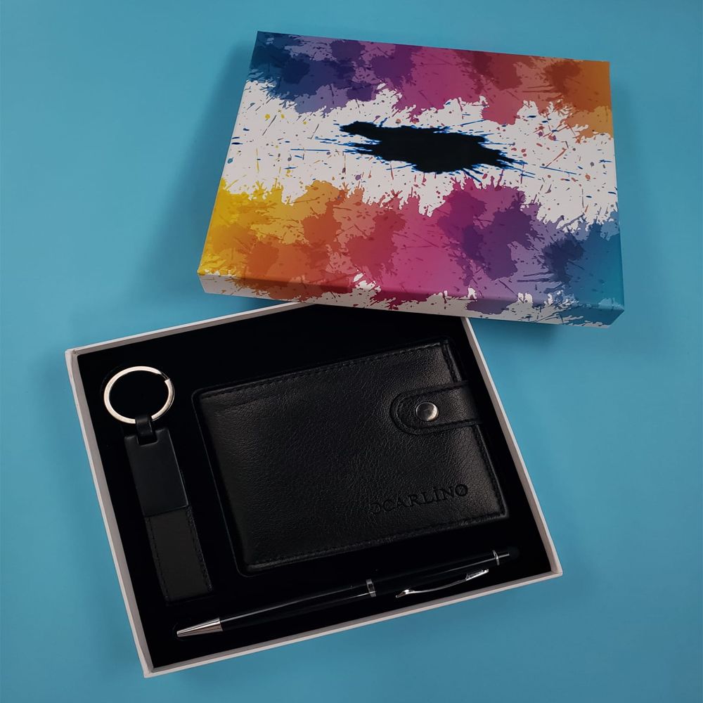 Siyah Cüzdan Anahtarlık Ve Tükenmez Kalem