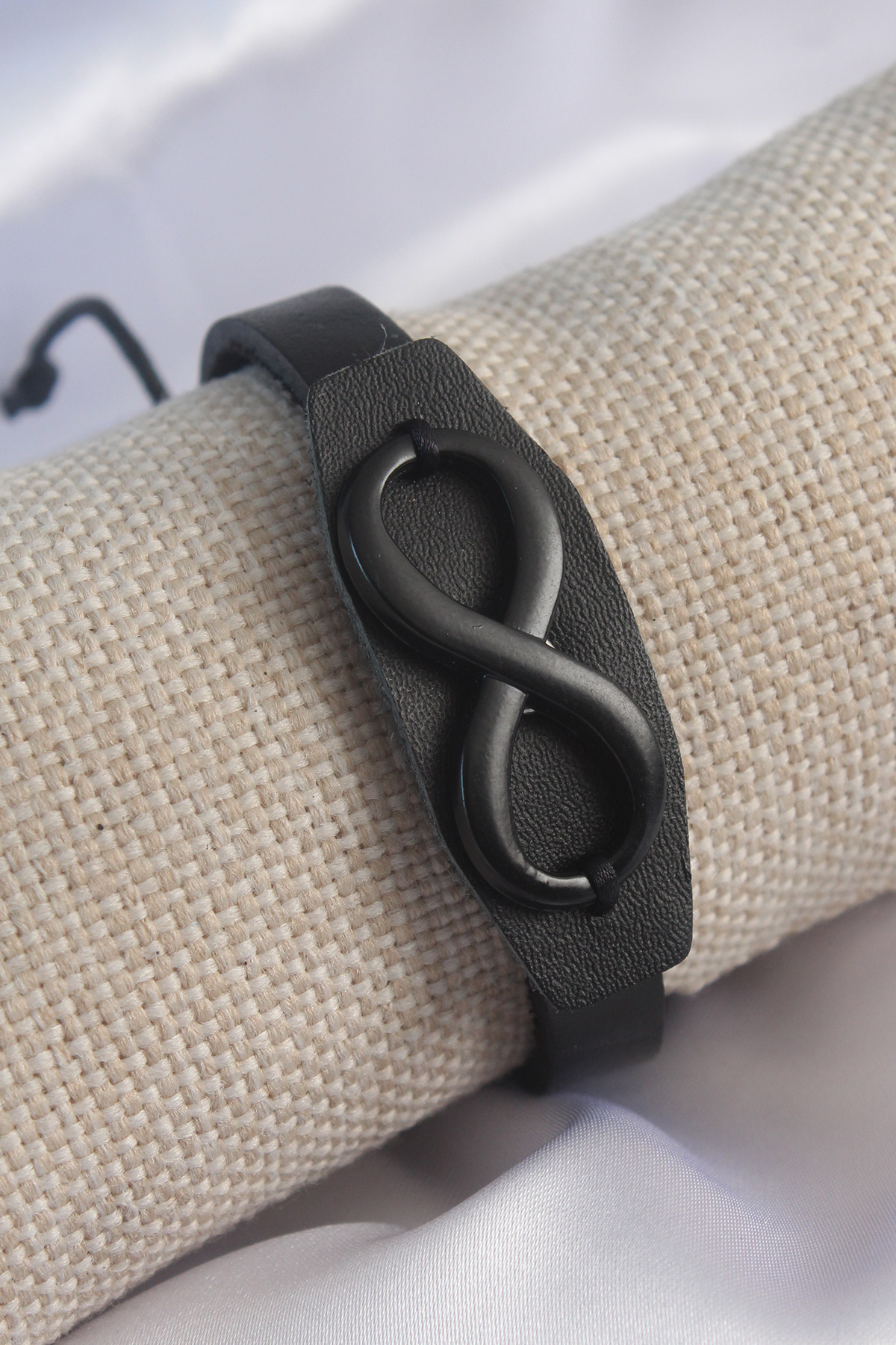 Siyah Deri Siyah Sonsuzluk İşareti İpli Erkek Bileklik - TJ-EB3575