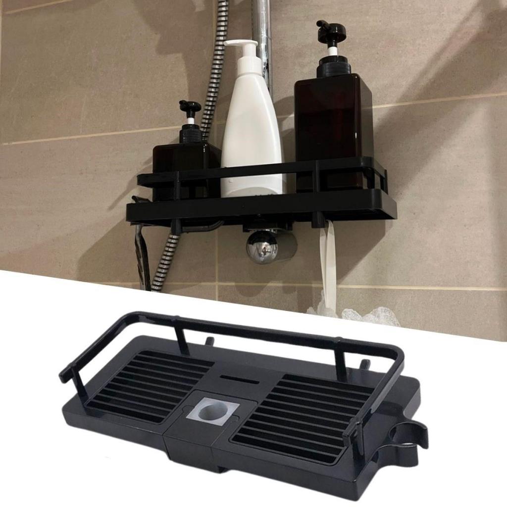 Siyah Duş Borusuna Sabitlenen Banyo Duş Rafı Şampuanlık Sabunluk Organizer