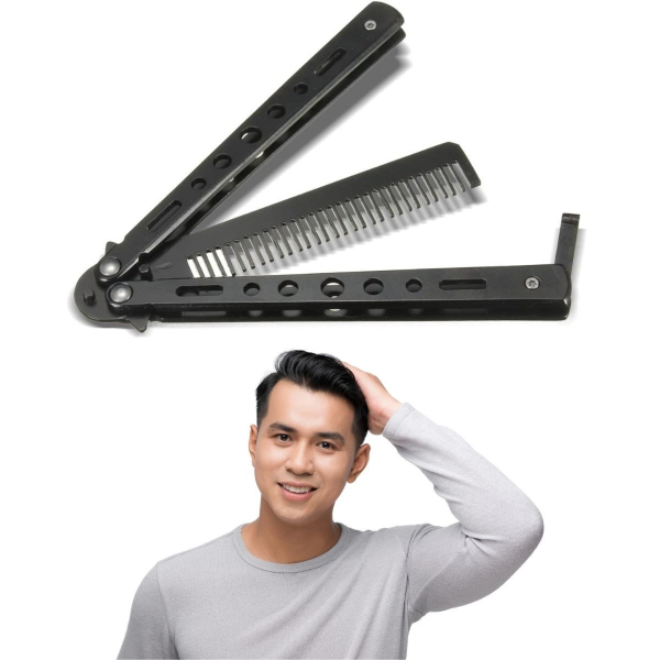 Siyah Katlanabilir Paslanmaz Çelik Kelebek Bıçak Tasarımlı Tarak