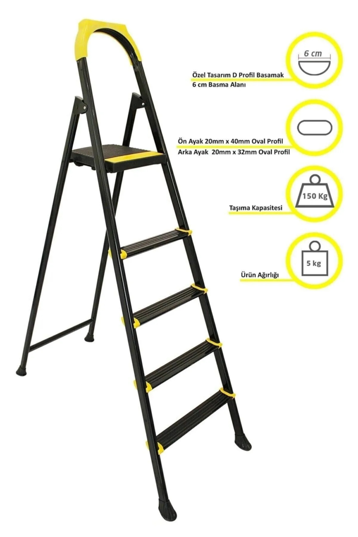 Siyah Katlanır Merdiven 4+1 Basamak Kaydırmaz Ayaklı