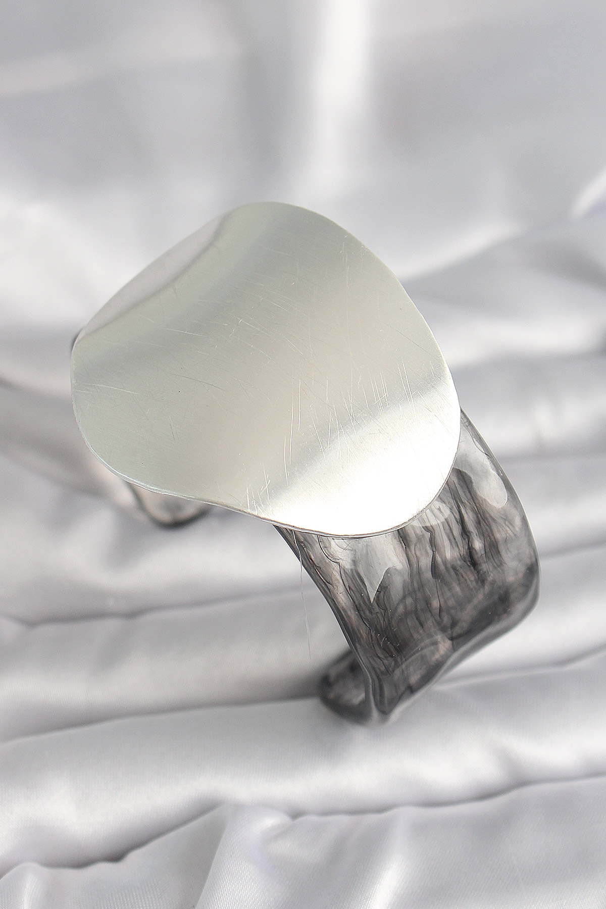 Siyah Mermer Desen Akrilik Pilastik Gümüş Plaka Model Vintage Kadın Bilezik - TJ-BB6669